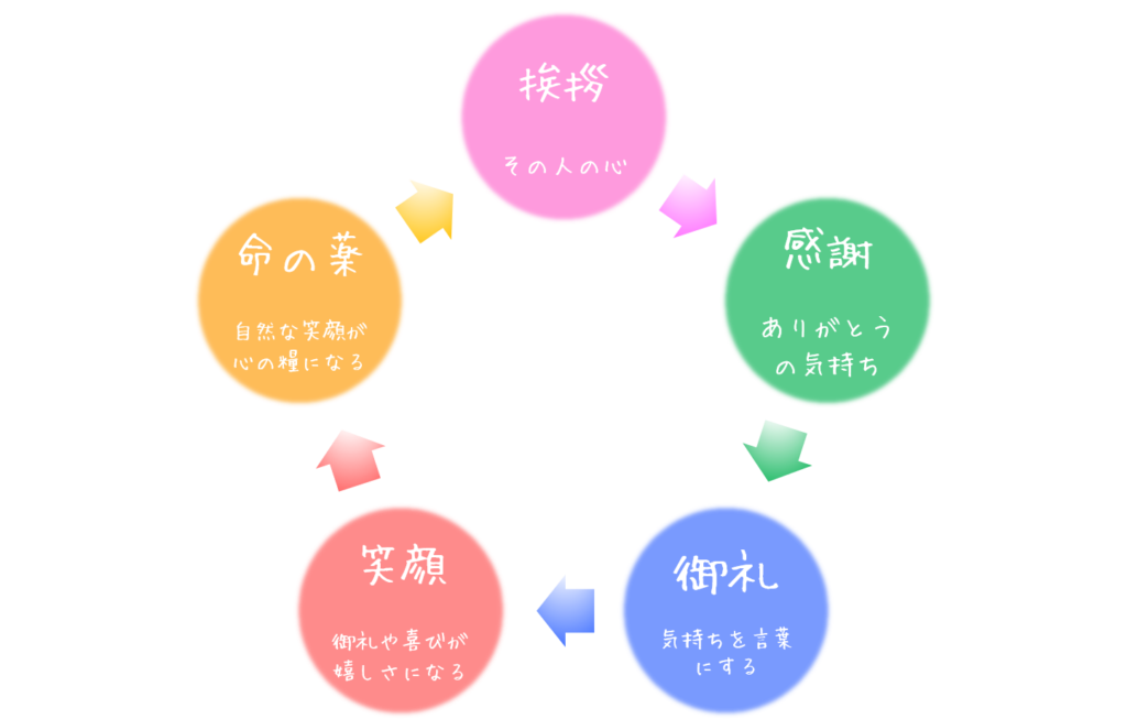 挨拶から始まり、感謝の心を持ち、心を御礼に代え